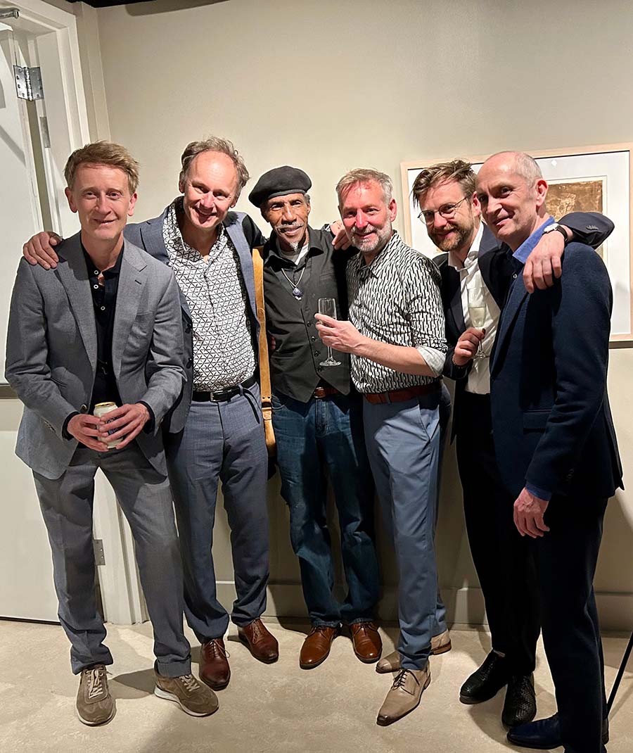 Gerry Schultz, Polly Feitzinger, Beth Child, Rita Landrum, and Daniel Angerstein enjoy the artist reception