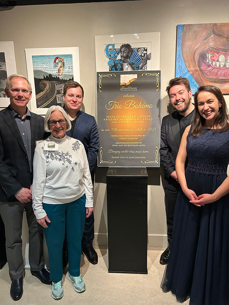 The Founders of TCA believed it essential that additional support for our programs would come from our patrons. Because our ticket sales cover less than half of our operating expenses, we continue to need and greatly appreciate your donations in addition to the price of our subscription series. During our history, more than 60% of TCA patrons have made donations at Friend, Sponsor, Patron, or Benefactor levels. Benefits beginning with the Sponsor level include invitations to artist receptions and, at the Benefactor level, reserved seats of your choice. The greatest benefit of all, however, is making it possible for TCA to continue to “Bring World Class Music Home.” Please consider making a generous donation. Thank you.